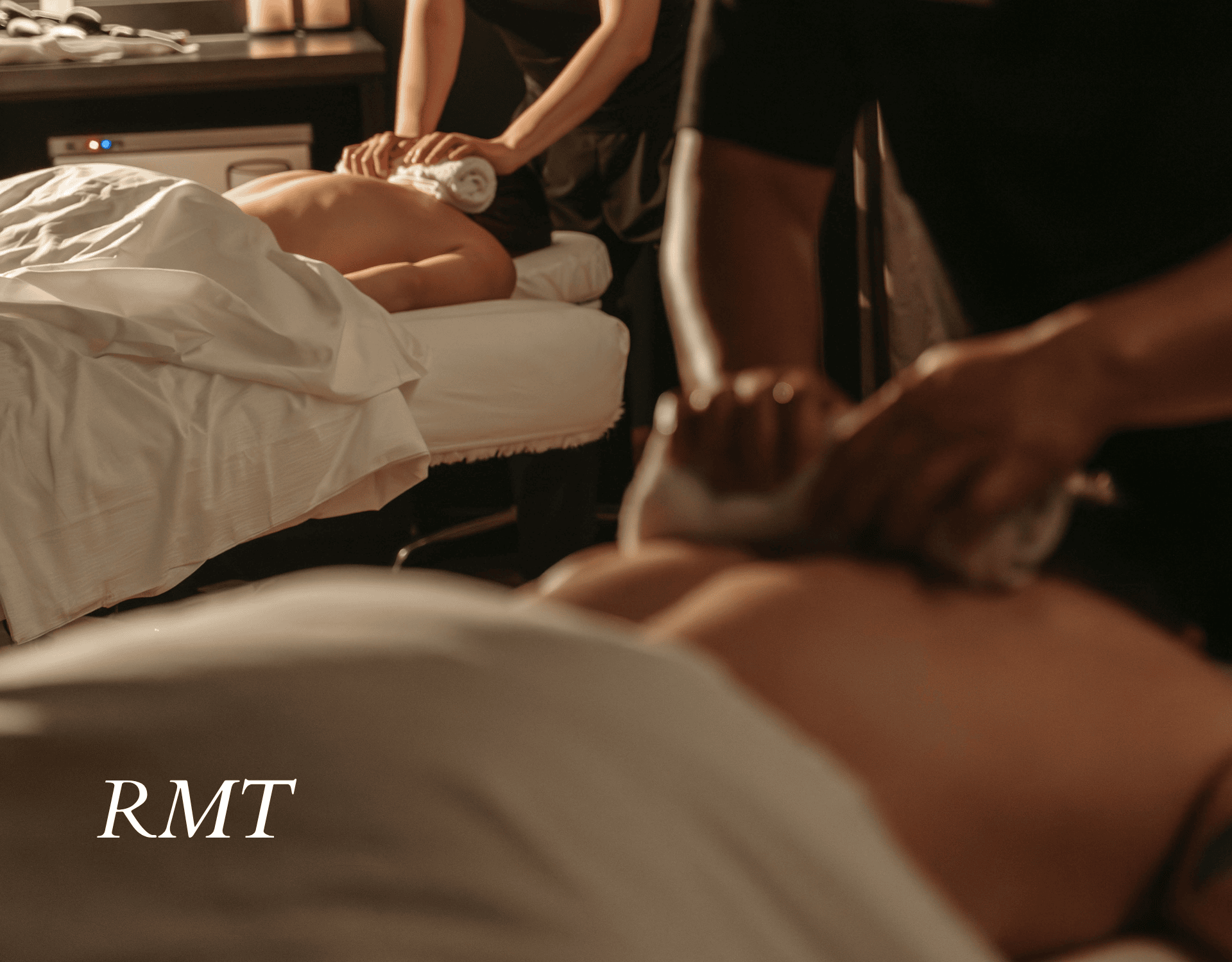 Side-by-side customized massages in a private room. Personalized aromatherapy enhances this shared ritual of connection.